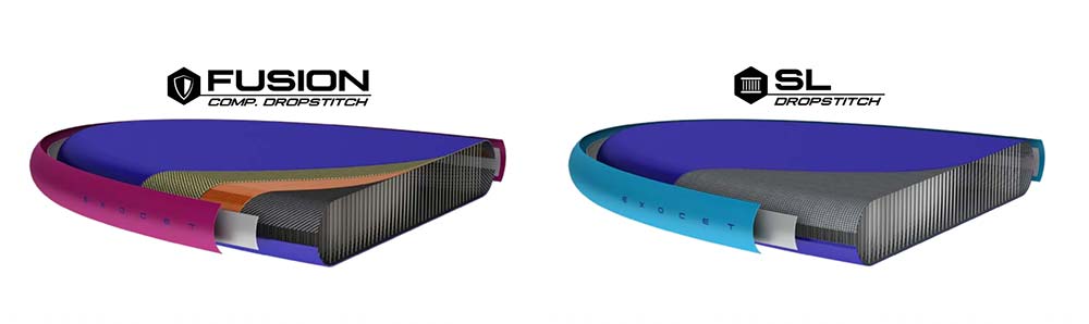 Deski wyposażone są w pokład EVA z kierunkowym wzorem, wzmocnioną strefę pod masztem i opcjonalne mocowania footstrapów. Wersja HP wykonana jest w technologii Fusion Composite Dropstitch (20 psi), a SL w Single Layer (15 psi).